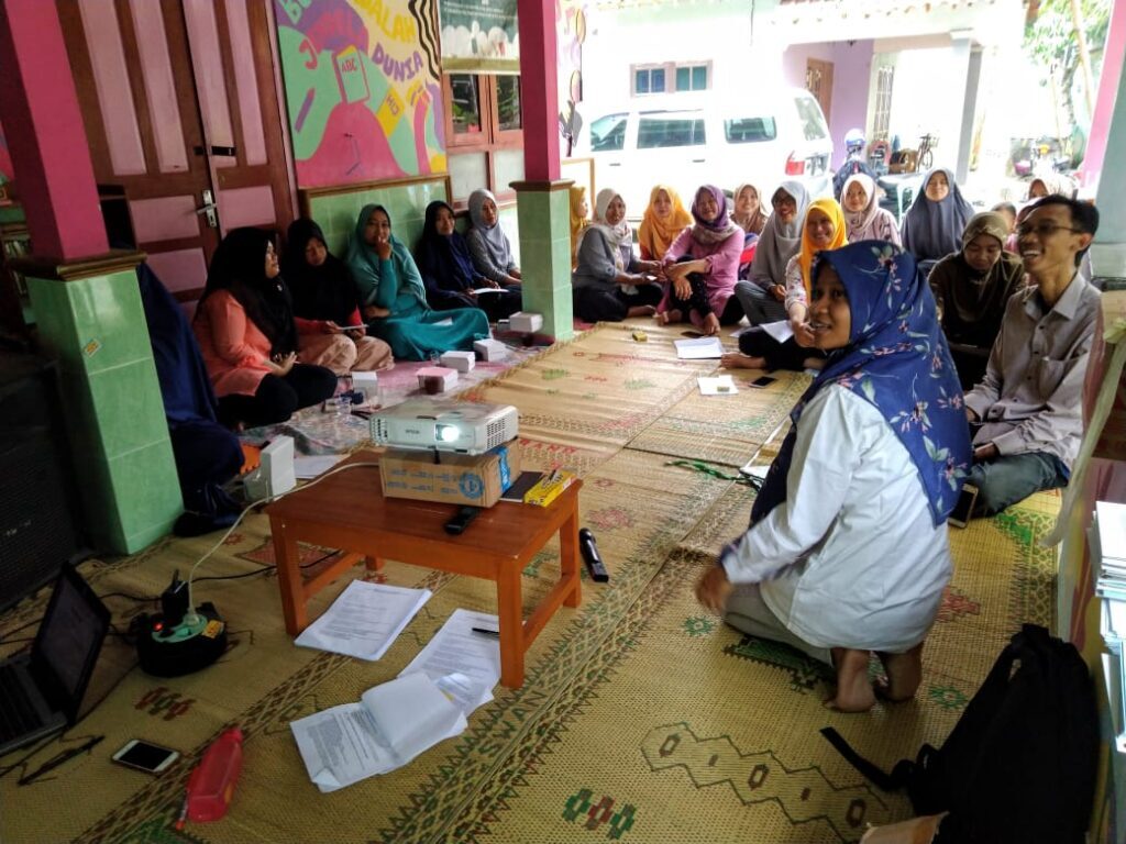 Keterangan Foto: Lamia (berbaju putih) saat sedang memfasilitasi lokakarya keamanan digital untuk ibu-ibu rumah tangga (September 2019).
